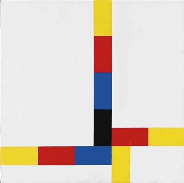Editor: This is an untitled piece by Verena Loewensberg from 1980. It’s an acrylic painting with these bold, geometric shapes... Rectangles in red, blue, green, yellow and black floating on a white background. It’s strikingly simple, almost playful. What stands out to you about it? Curator: It’s interesting to consider this within a materialist framework. What were the conditions of its production? Loewensberg's choice of acrylic, for example. In 1980, it was no longer the new, revolutionary material, yet it still held a different connotation than oil – a symbol of mass production and industry impacting art. How does that affect our understanding of her artistic intention? Editor: So, the use of acrylic moves it away from traditional "fine art" associations? Curator: Precisely. The use of manufactured materials, the smooth, unmodulated surfaces achieved with acrylic – these deny the expressive touch so valued in earlier painting. Think about the social context too: Concrete art emerged post-World War II, driven partly by socialist and utopian ideas. Where does this piece fit in the history of abstraction and this moment? Was she still considering socialist themes at this point? Editor: That’s fascinating, I hadn’t considered the potential social or political aspects! I just saw the pretty colors and shapes. Curator: And there lies another question – are those choices of color a material consideration, a question of availability? Or are those particular choices, and arrangement, saying something about social ideas? Did her colour choices challenge conventions and assumptions around industrial practices? Editor: It gives me so much to think about. Thank you! Curator: It's crucial to move beyond the purely formal qualities. Consider the material conditions of artistic creation – where the artwork comes from, what it’s made of, and what those things might mean.
