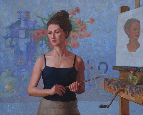 Luis Álvarez Roure painted ‘Sosiego’ with oil paint, and the way he handles it makes me think about the physical act of painting. The colours are muted, almost earthy, with a real focus on texture. The paint isn't smoothed out; you can see every stroke. Look closely at the background, and you'll notice how the yellow is scratched and broken, revealing hints of green underneath. It’s like he’s building up layers of feeling, not just colour. The dress itself is more of a sketch, with the flowers implied rather than meticulously rendered. This rawness gives the whole piece a kind of emotional honesty. This reminds me a little of Alice Neel; they both share this interest in capturing a mood or a feeling through the materiality of paint itself. There's a realness here, a kind of beauty that comes from seeing the process laid bare.