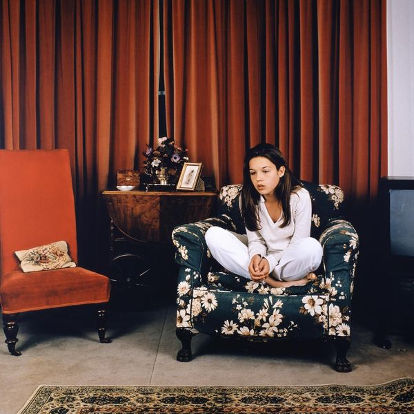 This black and white photograph called New York was made by Rosalind Solomon. It shows a man in dark clothing resting on a sofa with a curious object in his hand. It's interesting to consider the texture of the image, the way light falls and is captured by the grain of the film. Look at the way the lines of the man's face are captured, or the reflections in the baubles of the object he holds. Solomon plays with shadow, particularly in the folds of the clothing and the contrast between the darks and the light of the sofa. The pose is casual, but the image is carefully arranged to bring out the contrast between light and dark. The subject gazes into the camera as if thinking or waiting. Solomon has work in color, but I am reminded of the black and white work of Lisette Model. Both artists share a preoccupation with the starkness and drama of light and shadow, revealing a psychological complexity. Ultimately, this image asks us to consider the relationship between the artist, the subject, and the world they inhabit.