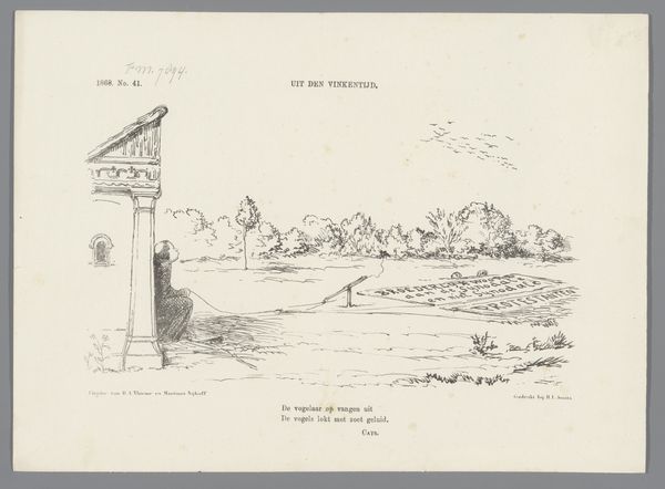 Curator: This print, titled "Spotprent op de door Heemskerk voorgestelde herindeling van Amsterdam," dated 1875, appears to be made with ink on paper, employing engraving techniques. It has a whimsical yet somewhat serious feel due to the presence of a ship and characters. How do you interpret the choice of materials and technique for a political commentary? Editor: Well, the detail achieved with engraving is quite impressive, considering the subject matter is the proposed redivision of Amsterdam by Heemskerk. It’s a pretty accessible medium, making it widely distributed. But why use such a traditional, almost historical medium for what's essentially a contemporary political issue? Curator: That's a perceptive question. Consider the social context: in 1875, printmaking, especially engraving, allowed for the relatively mass production and dissemination of imagery. Its accessibility as a medium ensured that political commentary could reach a broad audience. And by evoking historical visual tropes it encourages people to make connections between the current political events and history. What does the romantic style contribute to this narrative? Editor: So, the use of romanticism, with its emphasis on emotion and idealized forms, gives the subject a layer of nostalgia or perhaps satire? Making viewers reconsider a past? Curator: Exactly. The romantic style could soften the harshness of political critique, making the message more palatable, or, conversely, amplify the critique through ironic juxtaposition. It also speaks volumes about the intended audience: were they consumers of "high" art or the broader public? The choice of print and ink, alongside the visual language of Romanticism, reveals a deliberate strategy to engage with a specific demographic and shape public opinion regarding the proposed redivision. Did the materials and the image's composition influence how the message was received? Editor: It certainly makes me think about how political messages were communicated before mass media, and the deliberate choices in material and style! Thanks for highlighting these insights. Curator: And I, yours about connecting historical style to current consumption, shedding light on production and reception!