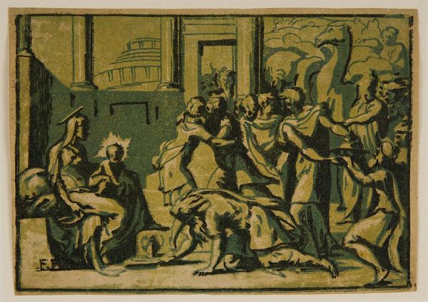 Editor: Here we have Luca Giordano’s "The Well of Bethesda," currently residing at the Harvard Art Museums. Looking at it, I’m struck by the artist’s control of space; it's as if the chaos is barely contained within the frame. What catches your eye in this work? Curator: Ah, yes, an excellent point about Giordano's contained chaos! For me, it's the tension between the earthly suffering and the divine intervention in the upper right. Do you see how the angel seems almost hesitant to descend into the turmoil? Editor: I do, there’s a reluctance in the angel's pose. I guess I was focusing on all the bodies pushing to get to the water. Curator: Exactly! It’s like Giordano is asking, "Where do we find hope amidst the suffering?" Maybe it's in that hesitant angel, or perhaps in the collective yearning of the crowd. Editor: That's a perspective I hadn't considered. I was too caught up in the drama to notice the subtleties. Curator: Art's funny that way. It keeps whispering new secrets if you listen closely enough.