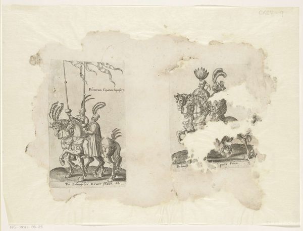 Abraham de Bruyn created this print, "Indian Prince and Indians on Elephant," in the late 16th century, a period marked by burgeoning European interest in, and often distorted representations of, distant lands. De Bruyn, who never traveled to India, relied on secondhand accounts and prevailing European fantasies to depict the “Indies.” This work offers a glimpse into the complex interplay between exploration, representation, and power. Note how the artist exoticizes the Indian figures, marking them as distinctly 'other' through dress and accoutrements, yet simultaneously imbues them with a certain regal bearing. This reflects the dual, often contradictory, European attitudes towards non-European cultures at the time: a mixture of fascination and a desire to dominate. The print serves not as a neutral depiction, but as a cultural artifact, revealing more about European perceptions of the ‘Orient’ than about the realities of Indian life. It's a reminder of how images can shape, reflect, and reinforce cultural narratives, and the enduring power of representation in mediating our understanding of the world.