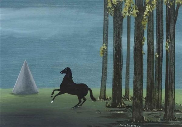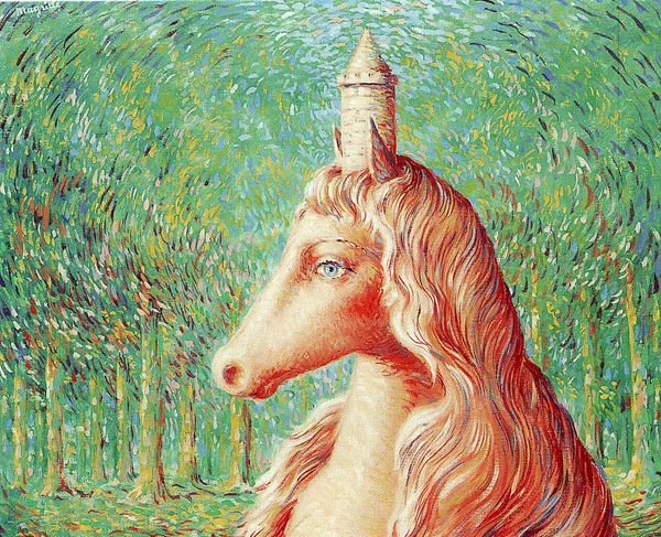 René Magritte made “Pure Reason” with oil on canvas, and the way he lays down these flat colors and hard edges, it's like he's constructing a puzzle rather than depicting a scene. Take the blue trees, for instance. Each one is so neatly defined, so distinctly blue, that they almost become abstract shapes. You could get lost in the repetitive pattern, like a child's drawing, yet they suggest a dreamlike landscape. And then, bam! This enormous horse head appears, soft and flowing. I think it's interesting how he contrasts the smoothness of the horse with the starkness of the trees. It's like he's saying, "Here are two realities, side by side, coexisting." It reminds me of some of de Chirico’s dreamscapes. Ultimately, “Pure Reason” isn't about finding answers but about embracing the questions and the endless possibilities of interpretation.