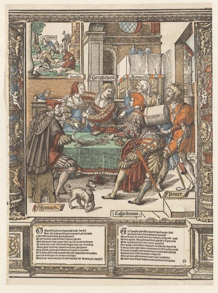 Editor: This tempera on vellum, "Banquet Given by Charles V in Honour of His Uncle Emperor Charles IV in 1378," by Jean Fouquet, dated 1460… It strikes me as an interesting blend of formality and narrative detail, with its carefully arranged figures and heraldic elements. How would you interpret its cultural significance, particularly regarding displays of power? Curator: Well, think about what a miniature like this would have been used for in the 15th century. It was likely part of a larger illuminated manuscript, possibly commissioned by someone connected to the French court. Such works played a significant role in constructing and communicating social and political ideals. The detailed depiction of the banquet serves to solidify the legitimacy and prestige of Charles V by showcasing the grandeur of his court and the presence of the Holy Roman Emperor as a guest. Editor: So it's not just about the literal event, but about projecting a certain image? Curator: Exactly. The choice of portraying a grand banquet with such specificity, including details like the fleur-de-lis on the royal blue cloth, communicates a deliberate message of power and lineage. Consider the historical context: France was solidifying its position on the European stage. Such displays, both in reality and in artistic representations, helped to cement this. How might the location of this work – in the Bibliothèque nationale de France today – further contribute to its ongoing historical narrative? Editor: That's a great point. Being housed in the National Library elevates its status, almost like an official record sanctioned by the state itself. Curator: Precisely. The art becomes intertwined with institutional power and national identity. This miniature, therefore, operates not just as a piece of art, but as a historical document actively shaped by the forces surrounding it. Editor: I never thought of it as such a calculated piece of propaganda! Curator: It reflects how art, particularly art tied to royalty and the state, is invariably caught in webs of power and influence, then and now. Editor: This really makes me appreciate the context in which art is created and displayed!