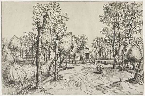 Abraham Rutgers created "Skaters on a River" using pen and brown ink with brown wash. The drawing presents a landscape dominated by horizontal lines of the frozen river, the distant shore, and the sky. The skaters are interspersed creating a rhythm of dark and light, balanced by the textured trees in the foreground, which frame the scene. The muted sepia tones create a sense of depth. Rutgers uses linear perspective not just to depict space, but also to structure the viewer's gaze. The skaters become signs within a semiotic system of winter leisure. Yet, the bare trees in the foreground disrupt this idyllic scene, acting as a screen that filters our view. This could be seen as a commentary on how the structure of landscape art mediates our perception of nature and society. The drawing reminds us that any artistic representation is not a mere reflection of reality but an active construction that engages with, and potentially challenges, our understanding.