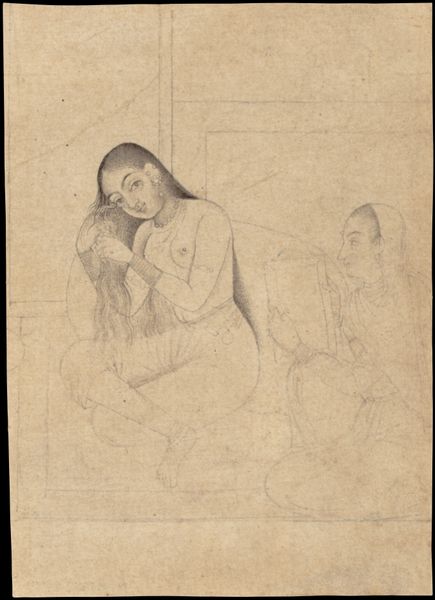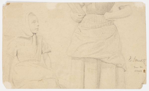 Cornelis Bega created this drawing, ‘Woman Holding a Jug and a Study of her Head Seen from the Left,’ using black and white chalk on blue paper. The composition is striking for its dual portrayal, where a detailed figure of a woman holding a jug is juxtaposed with a lighter sketch of her head in profile. Bega’s use of line is particularly notable. Notice how the precise lines define the contours of the woman's face and the jug, creating a sense of volume. In contrast, the study of her head employs softer, more diffuse lines, suggesting a fleeting, less defined presence. This contrast in linework is not merely aesthetic; it serves to distinguish between the present and the potential. The detailed figure embodies a moment captured, while the sketched head represents a transient thought. Bega masterfully uses line to engage with notions of temporality and perception, inviting viewers to reflect on the fluid nature of identity.