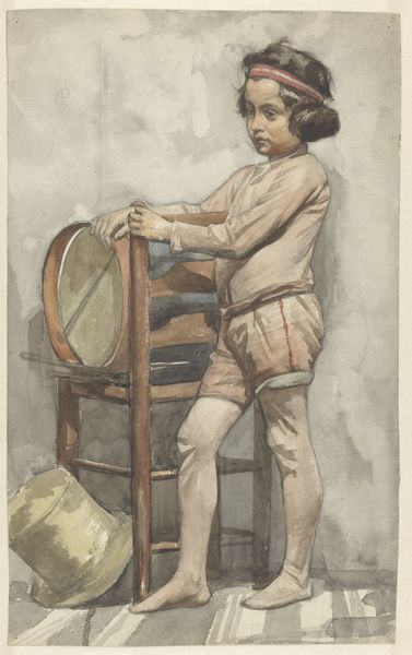 Albrecht Anker painted "Drumming Boy" in 1904, with watercolor on paper. It captures a seemingly simple moment, yet resonates with broader social and cultural themes of the time. The image of a child, a common subject in Anker’s work, evokes the values of domesticity and childhood innocence that were central to the emerging bourgeois culture of late 19th and early 20th century Switzerland. But notice that instead of a manufactured toy, the boy is drumming on what appears to be a humble wooden bucket. The artist is commenting on the social structures of his time. Anker’s paintings often depicted children in rural settings, reflecting a nostalgia for a simpler, pre-industrial past. To understand this work more fully, we can delve into the social and economic history of Switzerland during this period, researching the changing roles of children and the impact of industrialization on rural communities. Such research helps us appreciate how art reflects and shapes our understanding of society.