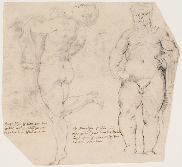 Curator: Here at the Rijksmuseum, we have before us an etching dating from around 1645-1706, titled "Vrouwelijk naakt, vooraanzicht en rugaanzicht" - or "Female Nude, Front and Back View," created by an anonymous artist. What’s your first take on it? Editor: The contrasting lines immediately strike me – almost Spartan in their rendering. The front view presents an open vulnerability, which the rigid posture seems to deny. Curator: Precisely! These representations resonate within a tradition where the female nude became a battleground for societal expectations and control. The piece is not merely a depiction, but an exploration of the male gaze and its implications on women's lived experiences, wouldn't you agree? Editor: To some extent, although, focusing on pure form, the academic drawing allows us to look closely at human anatomy. The composition—juxtaposing front and rear views— invites comparison, almost clinical in its pursuit of detail. Curator: I would counter by stating that its cool objectivity echoes the patriarchal framework from which it emerged. Articulations of objectivity were commonly tools used to codify and normalize particular power dynamics. This representation of the female body serves to place it under the objectifying eye of the scientific and artistic male elites, creating and reinforcing existing inequalities. Editor: But look how the etching technique captures subtle gradations of light and shadow to model the curves of the figures. The use of line emphasizes form and structure, highlighting musculature and bone beneath the skin, regardless of political interpretation. Curator: True, we observe classical beauty ideals at play, but also the complex interaction of gendered, raced, and classed social structures within which those aesthetics are shaped and interpreted. I appreciate that you mention the use of light to capture "curves", which has throughout art history been employed to signal out femininity. Editor: These considerations give added value to the visual impact of the piece. The anonymous artist challenges us to examine art-historical, aesthetic concerns around shape. Curator: And conversely, it begs us to reconsider whose perspective dominates historical canons and how we navigate inherited biases. Editor: It provides more questions than answers regarding art. Curator: And perhaps, that is exactly what art, even historical, should do.