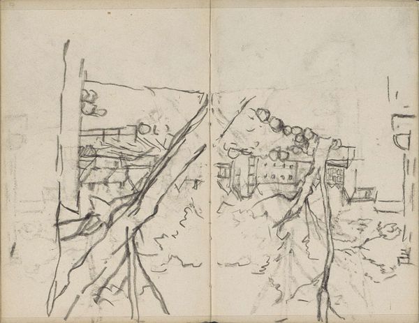 Curator: Here we have Joseph Pennell's "Stock Yards, Chicago." Pennell, born in 1857, captured scenes of industrial America, and this print offers a glimpse into Chicago's meatpacking district. Editor: It's bleak, isn't it? Like a dusty, sepia-toned nightmare of fences and distant smokestacks. I can almost smell it, that mix of sweat and… well, you know. Curator: Pennell wasn't just documenting; he was participating in a broader dialogue about industry and its impact on American life. The Yards, as they were known, were a symbol of both progress and exploitation. Editor: Exploitation, definitely. Look at the scale, the sheer number of animals and people crammed into this space. It feels dehumanizing, impersonal. Even the sky looks heavy. Curator: Pennell's stark style, almost like a mechanical drawing, emphasizes the regimentation and scale of the industry. It's a powerful statement, even today. Editor: A statement, yes, but also a lament, perhaps? It's haunting to consider how little has changed, how we’re still grappling with these issues of industrial ethics.