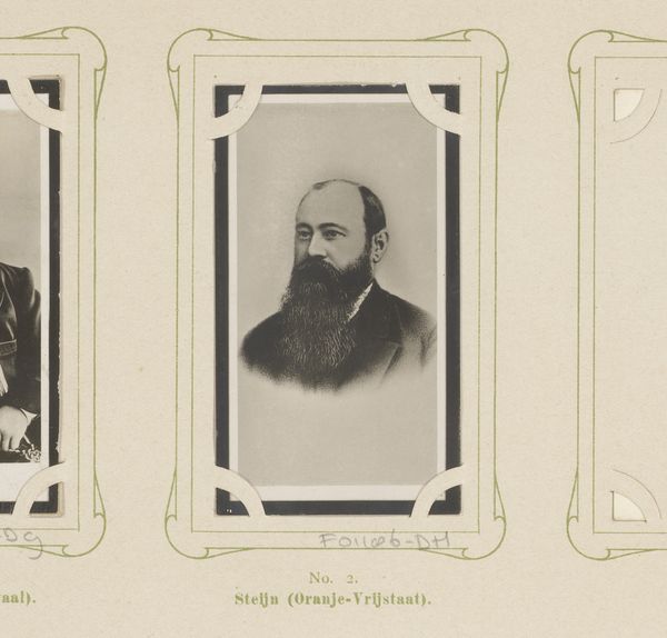 This small, anonymous photograph presents a portrait of Koos de la Rey. The composition centers on De la Rey's face and robust beard, framed by a dark hat and suit, which draws our attention to the texture and form of his facial hair. The photograph's structure is articulated through contrasts. The subject's sharp gaze and the geometric framing create a tension between the softness of his features and the rigid lines around him. Semiotically, the beard can be read as a signifier of wisdom and masculinity, prevalent in depictions of historical figures. Yet, the anonymous creation and reproduction of this image challenge the singular authority usually associated with portraiture. The visual elements, such as the play of light and shadow, contribute to a reading that questions fixed identities. The photograph functions as a cultural artifact. Its structure doesn’t just represent an individual but also reflects broader cultural values and the complexities inherent in representation itself.
