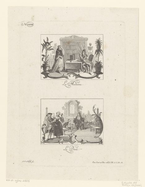 Editor: This is "Spotprent uit Utrechtse studentenalmanak, 1855," dating back to 1855. It's a print by Carel Christiaan Antony Last, housed at the Rijksmuseum. The image, comprised of these vignettes, gives off a kind of satirical, humorous vibe. What do you see in this piece? Curator: Well, immediately I'm drawn to the visual language being used. The clear organization of the print reminds me of contemporary narrative illustrations or comics, if you will. We can analyze how this image, published in a student almanac, was likely meant to both entertain and reflect on student life at that time. Editor: That's interesting, the notion of it being akin to a comic strip. What details jump out to you regarding that "student life" you mentioned? Curator: Note the depiction of social gatherings, romantic pursuits, academic settings, and what looks like drunken antics. These scenes present a view into the cultural values, pastimes, and perhaps the perceived excesses, of student culture. Also, what role did these images play in shaping the perception and identity of the university students depicted here? Editor: So, you're saying the image serves not only as a record, but as a cultural statement? A way of commenting on the social dynamics of the university world? Curator: Precisely! And consider who was consuming this imagery. How might the student readership have interpreted these caricatures of themselves and their peers? Do you think that it held them to specific behaviours? Editor: I hadn’t thought about it that way. I was viewing the artwork solely as an interesting, dated portrayal, but now I see it operates on another level, too. Curator: Exactly! It’s through considering these social contexts and intended audiences that these historical prints really start to speak to us today. Editor: I agree, recognizing the satirical nature aimed at contemporary students has truly expanded my perspective! Thank you!