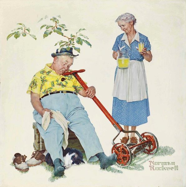 Norman Rockwell made this painting, “New Calendar,” around 1956, a key moment in American cultural history. It depicts a man hanging a 1957 calendar featuring a pin-up cowgirl, while his wife looks on disapprovingly. Rockwell was famous for capturing everyday American life, but here he also hints at deeper social tensions. The pin-up girl, a symbol of idealized femininity, clashes with the more traditional image of the wife, who is portrayed as practical and domestic. The husband seems caught between these two ideals. This image reflects the changing roles of women in post-war America, as well as the rise of consumer culture. It speaks to shifting attitudes towards gender roles and sexuality. To fully understand this artwork, we need to delve into the cultural and historical context of 1950s America. Analyzing magazines, advertisements, and other visual media from the period can give us a richer picture of the social landscape that shaped Rockwell’s art.