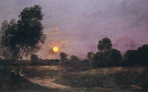 Ralph Blakelock created *Moonlight on the Brook* using oil paints, likely building up layers to achieve its distinctive luminescence. Blakelock was known for his unconventional methods, often mixing his own pigments and applying paint in thin glazes, sometimes even using unorthodox materials like sand to create texture. The resulting surface quality of this work is captivating. Notice how the paint creates a soft, diffused light, evoking the tranquil atmosphere of a moonlit night. The materials and the way they are manipulated contribute significantly to the overall mood. It's worth noting that Blakelock struggled financially during his lifetime. Despite his artistic talent, he faced challenges in selling his work. Understanding the context of the artist’s life allows us to consider the value of materials, labor, and the role of the art market in shaping artistic careers. It encourages us to look beyond the surface and appreciate the complexities of artistic production.