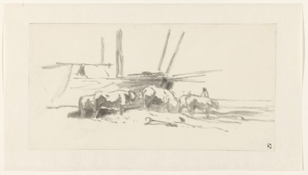 Philip Zilcken created this etching of the frozen North Sea near Scheveningen in 1891. The image offers a glimpse into the social life of the Netherlands during a time of significant climate anomaly. The etching method, with its network of fine lines, creates a sense of stark realism, capturing the bleakness of the frozen sea and the isolation of the figures who venture onto it. Made in the Netherlands, a country with a deep connection to the sea, the image hints at the influence of geography on culture, while also recording a period of exceptionally cold weather. This might have disrupted maritime activities and impacted local economies. As historians, we can use sources like weather records, personal diaries, and newspaper archives to reconstruct the social impact of such events, gaining a deeper understanding of how communities adapted to environmental challenges. This artwork serves as a reminder of the interplay between society, environment, and artistic expression.