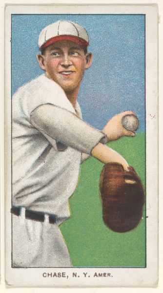 Editor: This is a baseball card, “Lake, New York, American League” from the White Border series made around 1909-1911 by the American Tobacco Company. I’m immediately struck by how…ordinary it seems? Almost mundane compared to fine art. What do you make of this, putting on your historian's hat? Curator: Mundane perhaps on the surface, but deeply embedded in social history. These cards, mass-produced and distributed with tobacco products, represent a pivotal moment in the commercialization of sports and celebrity culture. The American Tobacco Company wielded immense power; how did they use such imagery to reach into nearly every American household? Editor: So it’s less about the aesthetics and more about its role in shaping culture and commerce? Curator: Precisely! Think about it: Baseball was becoming America's pastime, and tobacco companies used these idealized images to promote their brands, associating smoking with athleticism and Americana. The “White Border series” is fascinating; its ubiquity and disposability reflect a culture increasingly reliant on mass production and consumption. Who was included, and who was not? How were they presented? This became the visual language of popular success. Editor: That makes so much sense! It's like a snapshot of the era's values and aspirations packaged within a commodity. Is that ‘snapshot’ view affected by where we might find it displayed, say here in a museum like the Met? Curator: Absolutely. Its presence here raises important questions. How do we assign value, and what does it mean when an object once intended for momentary consumption ends up in a place of preservation? Has baseball memorabilia, therefore, itself been commodified into art? Editor: This has completely shifted my perspective! It's a reminder that even the most seemingly trivial objects can hold significant cultural weight, once you dig beneath the surface. Thanks! Curator: Indeed. The image, the industry, and the institution. All crucial aspects of this fascinating piece.