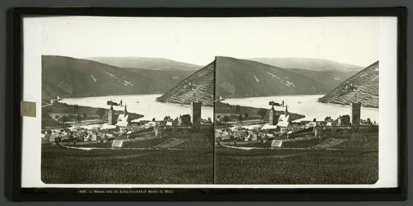 Editor: Here we have “Slot Stolzenfels vanaf de oever van de Lahn,” a photograph captured between 1860 and 1890 by Ferrier Pére-Fils et Soulier, using the gelatin silver print method. I'm struck by the romanticism, how the imposing castle in the distance seems to watch over the river and the daily lives of those traveling on it. What do you see in this piece? Curator: I see a constructed landscape steeped in power dynamics. The romanticism you note isn’t simply aesthetic; it’s deeply entwined with the socio-political narrative of 19th-century Europe. Photography at this time often served to legitimize power structures by creating idealized images of the land owned by those in positions of authority. Consider, for instance, how the castle dominates the composition. Does that feel like a neutral aesthetic choice? Editor: No, it does feel like its placement signifies its importance and dominance. The river and the boats seem almost secondary, like they’re just there to highlight the castle’s grandeur. Curator: Exactly. Think about who controlled the waterways, who profited from trade, and who resided in the castle. The “natural” scene isn't really natural at all but rather an intentional ordering of space that reflects a specific ideology, maybe even colonialism. The lack of people might signal that those who labored or lived in poverty in this area were purposely left out of this ideal representation. Why do you think this might be the case? Editor: To maintain an illusion of control, of uninhabited ownership. Curator: Precisely. It urges us to investigate what realities are intentionally obscured. It pushes me to look at how visual narratives historically shaped cultural and political perceptions, and how those representations affect our world today. Editor: This has definitely changed my perspective; I initially saw romantic beauty, but now I see a statement about power and control, who is depicted and for what reason. Curator: And questioning those representations is precisely where understanding – and transformation – begins.