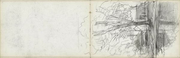 Curator: This is a pencil and ink drawing on paper entitled "Knielende Christus voor een engel" – "Kneeling Christ before an Angel" – by Antoon Derkinderen, likely created sometime between 1869 and 1925. My immediate reaction is one of intimacy. It feels like glimpsing a deeply private moment. Editor: Intimacy is definitely present. The rapid, almost frantic quality of the linework suggests the artist capturing a fleeting thought or impression. You can almost feel the pencil moving across the page. It feels like raw work, like a study of the idea. Curator: I agree, and I see in the motif, an artistic shorthand to a wider tradition in religious imagery, this gesture of kneeling represents humility, supplication and repentance before divine will. Angels frequently come to bridge heaven and earth, communicating guidance and solace, suggesting a divine intervention into the human realm. Editor: Absolutely. And thinking materially, the use of pencil and paper is significant here. It democratizes the process. Derkinderen isn't using expensive paints or precious metals. It suggests the immediacy and accessibility of this spiritual connection. This medium lowers the bar for anyone exploring deep human longings. Curator: And this connects with a collective cultural yearning. Through art historical interpretation we see reflections of humanity's quest to find solace and guidance in a complex existence through shared religious and mythic symbolism. The imagery resonates. Editor: Right. This isn't about celebrating divine splendor, it’s an open meditation, accessible, portable, replicable, it gives the scene even more humanity. It removes grandeur. We should not forget to observe it as an object born from physical means: the graphite mined, the wood milled for the pencil itself, the fibers processed to create the paper...all things connecting artist, labor, and ultimately the viewer. Curator: The image becomes a conduit then, not only for sacred meaning, but the mundane actions of labor that support the scene we view and consider precious. The work as a sign of hope, etched on paper and rendered with humble tools. Editor: A humble work created by humble means.