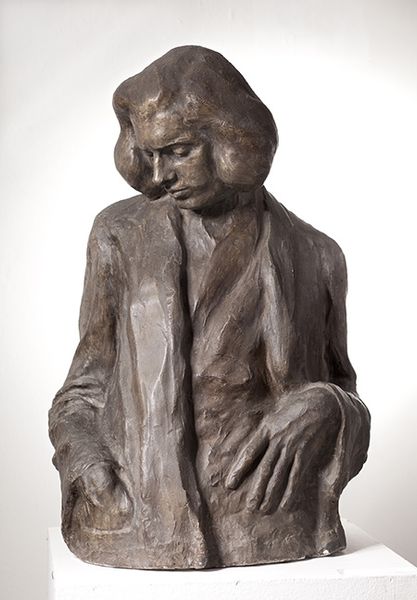 Curator: This is Emile-Antoine Bourdelle's bronze sculpture, "Maternity," housed here at the Harvard Art Museums. Editor: It's incredibly moving. The rough texture of the bronze gives it an almost primal feel, as if it were unearthed from the earth itself. Curator: Bourdelle was deeply influenced by Rodin, and you can see that in the expressive modeling of the figures, the raw emotionality captured in the bronze. Editor: Right. It's a powerful depiction of motherhood. It transcends the sentimental imagery often associated with the subject, highlighting the labor, the intimacy, and the physicality of the bond. Curator: Bourdelle exhibited widely and his work was acquired by numerous public collections during his lifetime, shaping public perceptions of sculpture. Editor: And how we view women, even today. The downcast gaze, the protective embrace… It's an intersectional commentary on gender, labor, and societal expectations. Curator: I agree. It is a stark reminder of the enduring power of art to provoke thought and emotion across generations. Editor: Exactly. It makes you think about the cultural narratives we perpetuate and the responsibilities we have to challenge them.