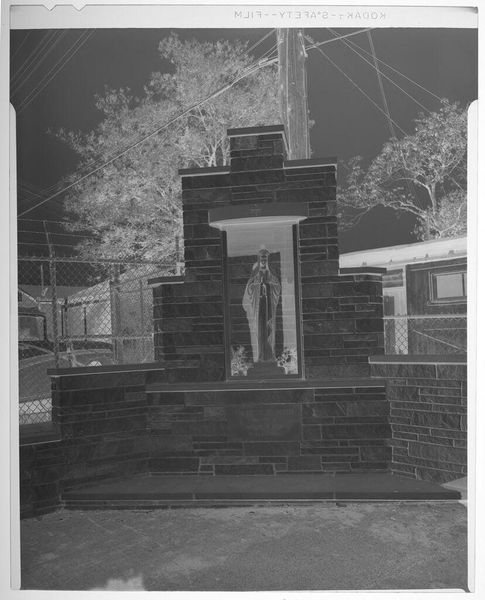 Editor: This is an intriguing photograph by Lucian and Mary Brown, titled "Untitled (decorations for luau)." It's interesting to see the luau decorations, the materials they're made of, but also the use of photography as a material. How do you interpret this work? Curator: Considering its materiality, I see a document of social practice. The photo captures not just a luau scene, but the construction of leisure. What are the implications of these assembled materials – the bamboo, the manufactured hula skirt – in the context of cultural representation and consumption? Editor: That’s a great point, the materials do tell a story of production and the creation of an event. It's fascinating to think about the labor and resources involved in creating this scene. Curator: Exactly. It prompts us to consider the labor, the social relations, and the broader economic forces at play in staging this particular cultural performance.