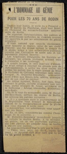 This is a newspaper clipping from the archive of Philip Zilcken. It announces the death of Frédéric Mistral, a Provençal poet. The clipping's focus is a poignant one: death. In this context, death symbolizes not just an end, but also cultural loss. This harkens back to ancient funerary art. Think of Egyptian sarcophagi or Roman death masks. These weren't just about physical remains but ensuring cultural memory. Similarly, the written word immortalizes Mistral. Consider Virgil, whose Aeneid sought to anchor Roman identity. Or Dante, whose Inferno grapples with moral and spiritual decay. Here, Mistral, through language, becomes an emblem of Provençal identity facing potential oblivion. Just as ancient cultures used symbols to navigate life's great mysteries, this clipping uses language to immortalize cultural heritage, confronting our collective fears of loss and decay.