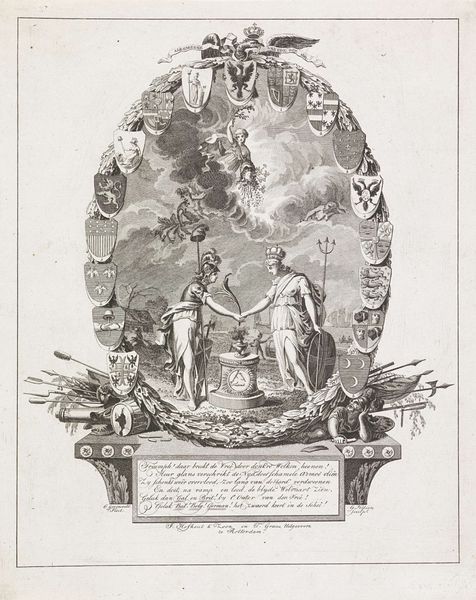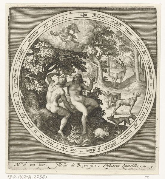 Editor: Here we have Johann Theodor de Bry's print, "Golden Age." The composition seems to evoke an idealized past. What sociopolitical messages might be embedded within this idyllic scene? Curator: That's a great question. Consider the historical context. The "Golden Age" was a popular theme during periods of social upheaval, often reflecting a longing for a simpler, more harmonious past, or perhaps even an attempt to critique the present by contrasting it with an imagined ideal. Editor: So, the print might be less about an actual historical era, and more about current anxieties? Curator: Precisely! Think about who commissioned this piece, and what their agenda might have been. It's not just about aesthetics; it's about power and representation. Editor: I hadn't considered it that way before, seeing it in terms of the present. Thanks! Curator: Of course. It's about looking beyond the surface, and thinking about the stories art tells about society.