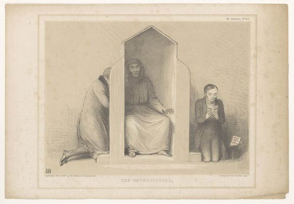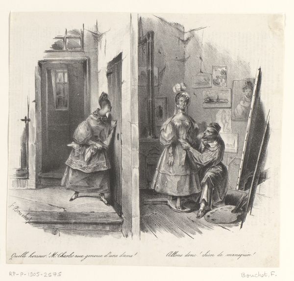 Pierre Grenier created this print, "Mural Decorations," for the "Illustrated London News," capturing a domestic scene. The most striking symbols here are the simple, childlike drawings adorning the wall, a primal form of expression reminiscent of ancient cave paintings. These stick figures and rudimentary forms, made with an immediacy, echo the desire to leave a mark, to assert presence. Think of the Lascaux cave paintings, where early humans depicted animals and hunts. Here, the child's art serves a similar function: staking a claim on the domestic space, expressing a narrative understood within the family’s context. The woman peering from behind the door introduces another layer—surveillance, secrecy, and perhaps humor. It is a timeless motif found in Renaissance paintings and theatrical comedies alike. Her gaze, like that of an all-seeing deity, embodies a psychological tension between freedom and control. These motifs are not linear, but cyclical, resurfacing and evolving to reflect our deepest fears and desires.