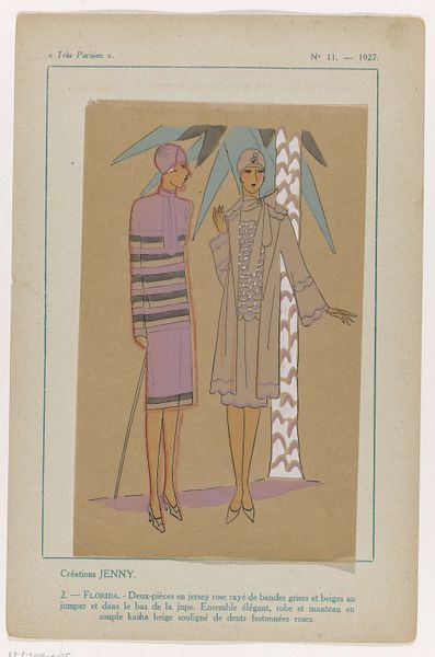 This is a plate from Très Parisien, 1925, by G-P. Joumard, a delicious concoction of ink and pochoir. It's all about the push and pull of process, you know? How do you arrive at a picture, step by step? Look at the way the rose color seeps into the brown, like a half-remembered dream. The texture is smooth, almost silken, yet those crisp lines suggest a decisive hand at work. Focus on the long pink tail of fabric, cascading from the figure's heel. It's a simple shape, but it anchors the composition, providing a playful contrast to the overall formality. Joumard reminds me a bit of Erté, but with a touch more, I don't know, restraint? Like they're whispering secrets instead of shouting them. Anyway, it's a reminder that art's not about having all the answers, but about asking the right questions, you know?