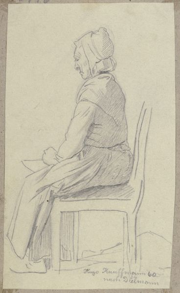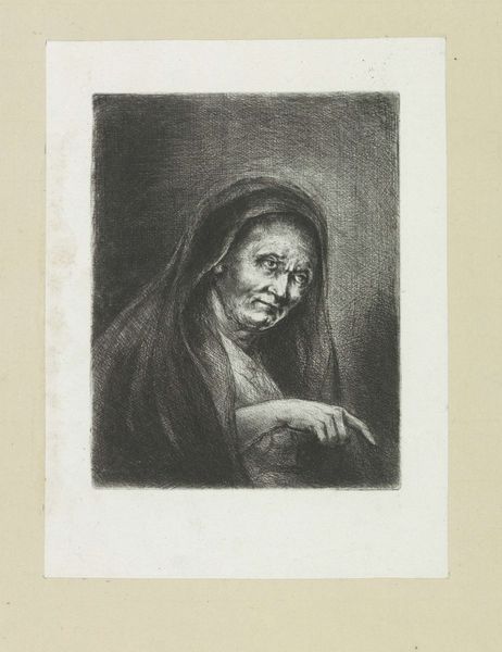 Curator: I find this image intensely moving; there's a depth of emotion in it. Editor: This is "Dependent," a drawing by Sol Carson, completed sometime between 1930 and 1948. It’s currently part of the collection here at the Metropolitan Museum of Art. The work uses pencil, and I believe it exists as both drawing and print form. Curator: The woman’s face…there's such vulnerability. I can almost feel the weight of her lived experiences, of a life perhaps etched with hardship. There’s also a dignity that radiates through the lines, however, no? Editor: Absolutely. What strikes me is the very explicit commentary on the situation of women and aging, a time in life when they are so often deprived of agency. She has no real role in public discourse; her entire selfhood seems diminished, yet, in some way, defiant. Curator: Considering its creation mid-century, I'm prompted to think of the historical context. The drawing likely reflects a societal reckoning in the USA after both world wars, with rapidly shifting economic structures and evolving perceptions around societal expectations of roles such as those of mothers or wives. Editor: And within those structures, who is deemed disposable? "Dependent," the very title is pointed; consider the language. We understand now the pressures on elderly, poor, or other vulnerable members of society. Who holds power over whom? Curator: Carson's handling of the medium is exquisite. The softness in the rendering contrasts with the hard reality the subject is experiencing. He has a keen eye for detail and sensitivity, but also a rather uncompromising eye to look unflinchingly at lives that are socially ignored or devalued. Editor: I also notice her hands; so detailed, showing time and work. These details bring home this feeling of dependency – reliance, almost begging - that's ingrained into gendered societal structures. Is the title more about her "dependency" as a woman, rather than simple financial needs? Curator: An interesting, important, challenge to pose. This drawing presents the portrait as a stage for political statements. "Dependent" allows us space to think about these figures differently and reevaluate both historical and present conditions. Editor: Indeed. "Dependent," it's more than just a portrait, isn't it? It is a powerful meditation of our place in society, the intersectionality of lived existence and an era that's simultaneously long gone, yet lingering right at our fingertips.