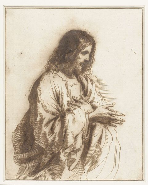 This small print, "Jonge vrouw met open hemd," was made by an anonymous artist using the etching process. The image is formed by making marks on a metal plate with acid. The plate is covered with a waxy substance, and then the artist scratches lines through it, exposing the metal. When the plate is dipped in acid, it bites into these exposed lines. The more time in the acid bath, the deeper and darker the lines will be. The plate is then inked and pressed onto paper, transferring the image. Look closely, and you can see the many small lines that create the image. The artist has used a variety of line weights to create a sense of light and shadow. Note the relative ease of producing prints, as opposed to unique works. This reproductive capability had profound social implications, making images available to a wider audience. While the artist remains anonymous, this etching offers insights into the circulation and consumption of images in its time. Considering the materials, making, and context of this print helps us understand the full meaning of the artwork.
