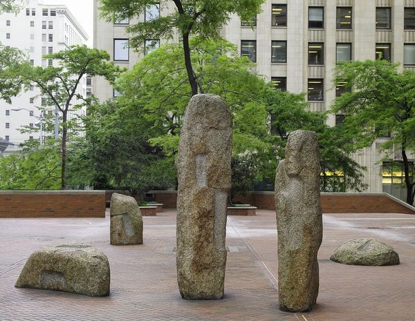 Curator: John Chamberlain, known for his sculptures made of crushed automobile parts, gifted us "Pineapplesurprise" in 2010. What are your immediate thoughts on it? Editor: Intriguing. It looks incredibly dynamic, almost explosive, despite its stationary nature. The use of metal, the folds and creases – they catch the light beautifully and give it such tactile energy. Curator: The choice of material, in this case, the reflective metal, is so crucial to understanding Chamberlain’s work. He often explored themes of mass production and consumption, American car culture, and its impact on society. To me, the title "Pineapplesurprise" almost hints at the violence embedded within industrial progress, veiled under a seemingly playful exterior. Editor: That's interesting; I hadn’t thought of the social implications of car culture. But on the formal side, the way he's managed to twist and contort such a rigid material…it defies expectation! The surfaces become so rich, full of texture and nuanced variations. There's also a great tension between the grounded base and the soaring, almost unruly, tendrils reaching upwards. Curator: Indeed. And the very notion of 'crushing' is interesting from a feminist perspective. Who gets to crush, who is being crushed? It evokes so many considerations about power, destruction, and even regeneration as those metal fragments find new form as an artwork in a public space. It is almost aggressive, contrasting, however, the background and location of the work. Editor: I agree. The work gains a certain tension between its form and surface treatment against the classical facades of the surrounding architecture. In that way, it achieves an exciting visual disruption. The color in particular creates the feeling that we're walking amongst Roman ruins, although not yet overgrown by flora. Curator: The 'surprise', perhaps, is in confronting these underlying themes within a form that's simultaneously chaotic and undeniably elegant. It requires us to pause and ponder what we are celebrating, consuming, and ultimately, destroying in our pursuit of progress. Editor: Yes, seeing it prompts one to analyze forms while discovering surprising textures, all within the frame of reference it finds itself occupying within an outdoor space. It creates tension between itself and the landscape and architecture around it. Curator: Ultimately, "Pineapplesurprise" offers an open invitation for discussion, prompting us to think about its broader influence. Editor: Yes, what can we observe and interpret at the cross-section of forms, structures, history, and their environments.