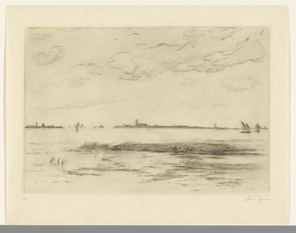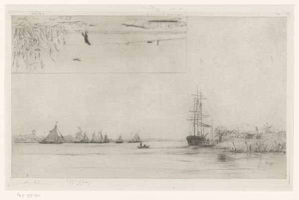 Curator: Up next, we have a fascinating pencil drawing titled "Riviergezichten met molens langs de Lek" which translates to "River Views with Mills Along the Lek." It's attributed to Petrus Johannes Schotel, and estimated to have been made sometime between 1841 and 1865. Editor: It feels like peering into a fleeting moment, like catching the artist in thought. All of a sudden it gives off very serene, calm and soothing vibes! Curator: Exactly! Schotel was known for his maritime scenes. Here, rather than a finished work, we're offered a glimpse into his process. Note the aged paper. This evokes the historical context, a period deeply entwined with Dutch maritime power and trade along waterways like the Lek. Editor: And these windmills! They give the drawing a kind of old-world charm. They're almost ghostly, aren't they? Kind of like whispers from another time! Curator: Yes, the mills weren't merely picturesque; they played a vital economic role. In terms of artistic interpretation, we could analyze how the loose pencil strokes suggest the ever-changing dynamics between landscape, technology, and labor, especially during a period of industrial development. Editor: I like how simple the sketches are, just bare outlines for a larger canvas. It makes me think: how would Schotel color these objects? Would he add in different brushstrokes, making the sky purple with oil paints? This is really beautiful. Curator: I'm glad you highlighted the 'incomplete' nature because this actually brings up questions regarding artistic intention and authenticity. It's in a sketchbook format and the looseness prompts discussions of art-making as something beyond commodity. How do these rough sketches relate to the market economy, considering Schotel's context? Editor: Hmm, now I'm picturing what he felt! You can imagine him maybe getting a bit annoyed because it would have been so tedious. I like imagining this sketch being imperfect! It has flaws! Curator: Absolutely. It encourages us to move past aesthetic appreciation toward a richer understanding of its socio-historical dimensions. It invites inquiries on the economic role and working conditions tied to those riverbanks. Editor: To me, this artwork invites you to think more and question more on how it would eventually become the product that would be sold off at marketplaces and galleries! Curator: For sure, thank you.