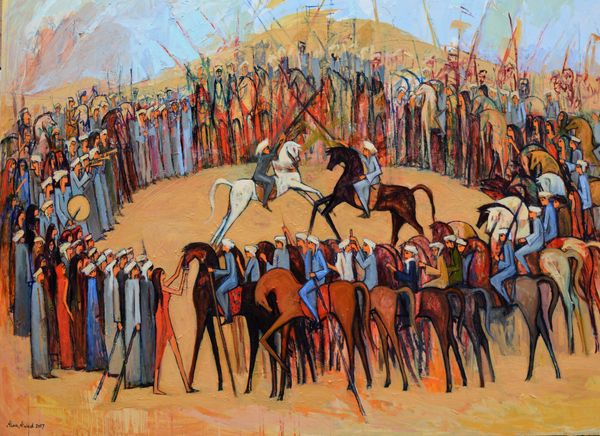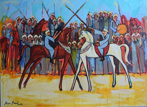 Alaa Awad painted ‘Suez Canal,’ using what looks like acrylic on a canvas measuring 150 by 300 centimeters, and the result is an ode to process. The muted colors and almost naïve style make it seem like an ancient fresco, a kind of folk art with a fine art sensibility. Awad builds up the surface with thin washes, creating a layered effect. The brushstrokes are visible, giving the painting a tactile quality; you can almost feel the artist's hand moving across the canvas. Take the white horse in the lower right – its simplified form and slightly awkward posture are incredibly charming. It's a symbol of progress perhaps, or a wry comment on the idea of progress. There’s something of Paula Rego in the way Awad handles narrative and figuration, using simplified forms to tell complex stories. Ultimately, Awad’s ‘Suez Canal’ reminds us that art is a conversation across time.