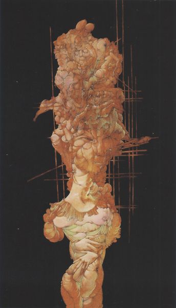 This painting by Zdzislaw Beksinski presents us with a colossal face, its features emerging from shadow with a strange orb hovering above. The eye sockets serve as haunting windows into inner depths. Consider the motif of the all-seeing eye, so ancient that it permeates cultures across time. Here, the empty sockets evoke not divine omniscience but rather a profound absence, a void. We see it echoed in ancient Egyptian art where eyes denote protection and insight. Yet, the grotesque distortion here twists that symbolism into something far more unsettling, as if the collective fears and anxieties of humanity are given form. There is a deeply felt psychological intensity; Beksinski taps into primal fears of mortality and the unknown. This isn't merely a painting; it's a visceral manifestation of the subconscious, a reminder of the cyclical nature of our anxieties, ever-present, ever-changing.