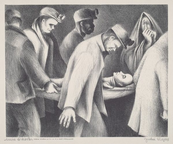 Curator: Here we have Natalia Goncharova’s "Round Dance," painted in 1910. The artist worked with oil on canvas to depict this lively scene. Editor: My first impression is one of community. It's dark, yet the figures almost glow with their shared energy. The brushwork looks quite energetic. Curator: Indeed, the piece embodies an expressionist style typical of the Russian avant-garde movement. Notice how the impasto and visible brushstrokes emphasize the handmade quality, reflecting a societal shift toward valuing labor and craft. It seems the materiality amplifies the genre. Editor: And I see echoes of ancient rituals within this material form. The round dance, as a symbol, extends beyond mere social activity, touching upon deeper, almost mystical communal bonds. It represents connection, continuity, and a shared identity expressed through circular movement. Curator: That’s fascinating to consider. Look at how their clothing denotes both uniformity and individuality. Each costume seems handcrafted, signaling the hours of labor woven into these celebrations, but then each garment appears personalized, and reflects individuality. Editor: Absolutely. The head coverings carry significant weight, acting as markers of status or perhaps even spiritual affiliation. They almost create a halo effect, elevating these ordinary women to a level beyond the mundane. Curator: One might explore how this aligns with the rise of interest in peasant crafts and culture at the time, and this idealized presentation perhaps reveals both authenticity and staged folklorism for wider audiences. Editor: And one also needs to ponder how Goncharova uses the symbolic weight of that shared dance to evoke a cultural memory—the past made alive in the present. Curator: That’s a key link to explore further when considering "Round Dance" and Goncharova’s work. Editor: Indeed, this glimpse at shared tradition offers a wealth of insights for the thoughtful observer.