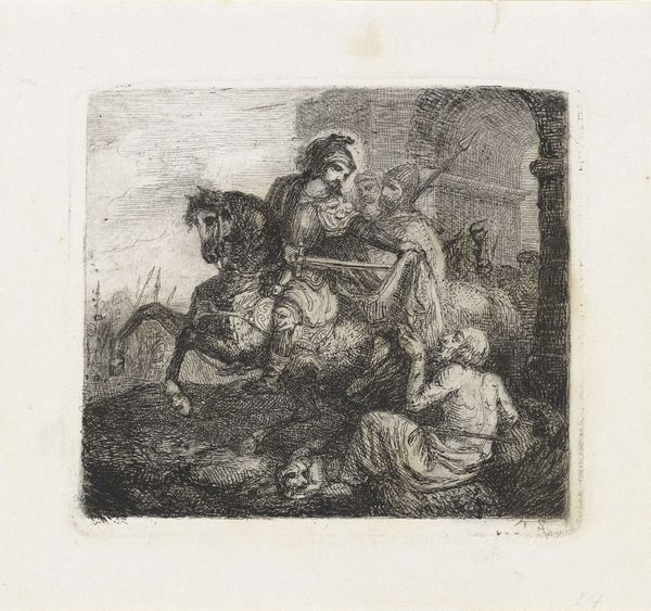 This print, *Vechtende Arabieren*, was made by Theodoor Schaepkens using etching – a printmaking technique that dates back to the early 16th century. The process begins with a metal plate covered in a waxy ground. The artist scratches an image into the ground, exposing the metal, before immersing the plate in acid. The acid bites into the exposed lines, creating grooves. The ground is then removed, the plate inked, and finally pressed onto paper. The depth of the lines, the strength of the acid, and the pressure of the press all affect the final image. Here, Schaepkens uses the technique to create a scene of conflict, the density of the lines contributing to a sense of drama and chaos. It’s important to remember that printmaking, even in the 19th century, was a laborious process, requiring technical skill and physical effort. So, next time you see a print, think about the materials, the making, and the context. It’s a good way to appreciate the full meaning of the artwork.