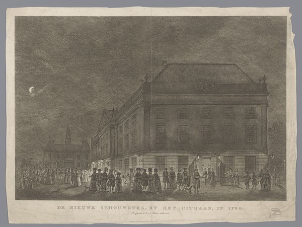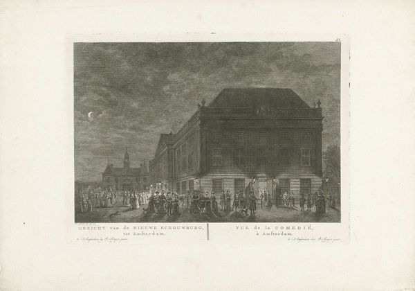 This print, showing the Amsterdam Theatre on Leidseplein at night, was made by Hermanus Petrus Schouten using etching and engraving. Schouten would have started with a copper plate, carefully coating it with a waxy, acid-resistant substance. He then used a sharp needle to draw the design, exposing the metal beneath. The plate was immersed in acid, which bit into the exposed lines, creating grooves. Finally, ink was applied to the plate, filling the etched lines. The surface was wiped clean, and the image transferred to paper under high pressure. The tonal range achieved by Schouten results from labor-intensive cross-hatching, lending depth and atmosphere to the scene. But it also reminds us that printmaking, while capable of capturing social life with great fidelity, was itself a product of specific social conditions. The highly skilled labor, the division of creative and production tasks – all speak to a complex relationship between art, industry, and the burgeoning public sphere. This print blurs the boundaries between fine art and commercial craft, offering a glimpse into the cultural landscape of 18th-century Amsterdam.