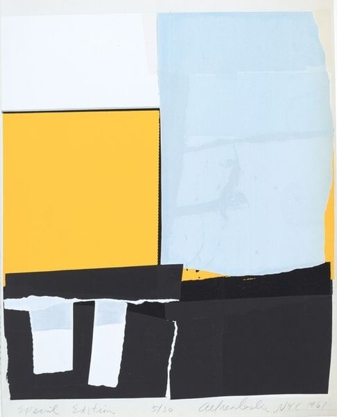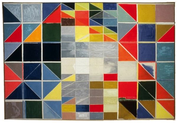 Brice Marden made ‘Formal Marble’ with what looks like wax and pigment on paper. The shapes are so simple – rectangles, squares, a triangle – but they create this weird tension. The colours are quiet but strong. I think about that blue, almost like a faded memory, right next to a bright yellow. And that green square! It's not flat; it feels alive with little brushstrokes and layers, like it was coaxed into being. Look at the way Marden lets the texture of the paper show through. It’s not about hiding the process, but embracing it. Up in the right corner, that marble effect – it's like a tiny landscape stuck inside the painting, like a secret world. Marden's earlier grid paintings come to mind; this feels like a broken, looser version of that. It reminds me a little of Agnes Martin's quiet grids but with more mess. It's like he's saying, 'Here's a structure, now let’s see what happens when we mess it up a little.'