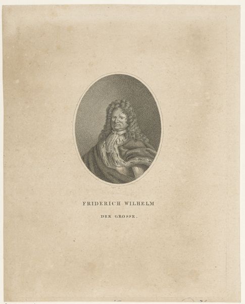 This is a print of Johann Rüdiger Schabol by Johann Christian Ernst Müller. The oval portrait immediately draws the eye with its classical form and detailed rendering, despite its modest scale. The engraver emphasizes line and form to create an image of precision and restraint. Within the structure of this print, the choice of an oval frame is not incidental; it serves to contain and focus our gaze specifically on Schabol’s profile. This shape contrasts with the sharp lines of the lettering below, which anchors the figure in historical context while still emphasizing an air of timelessness. The cool, almost monochromatic palette further enhances the sense of detachment, reducing emotional noise to highlight the subject's intellectual character. The artist uses the print's texture to explore how the manipulation of light and shadow can create a palpable sense of depth, allowing form to emerge from a flat surface. It's in these formal elements that we understand the print’s aesthetic intentions: not just to depict but to abstract the individual into an emblem of Enlightenment ideals.