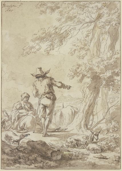 This anonymous drawing, ‘Brigands: Design for an Engraving,’ presents a scene dominated by meticulously rendered figures set against a sketched background. The artist employs a tight, controlled line to define forms and create a sense of depth within the composition. The foreground’s detailed depiction of the brigands contrasts with the landscape’s looser rendering, drawing the viewer's eye to the activity at hand. The composition is structured around the interplay between the brigands and their loot, presenting a visual commentary on themes of morality and transgression. The artist uses line work to explore the darker aspects of human nature, suggesting a world where societal norms are subverted. The drawing challenges fixed meanings by presenting a scene of criminality without explicit moral judgement. Instead, it invites viewers to reflect on the complex relationship between order and disorder, law and lawlessness, reflecting the ambiguities inherent in human behavior.