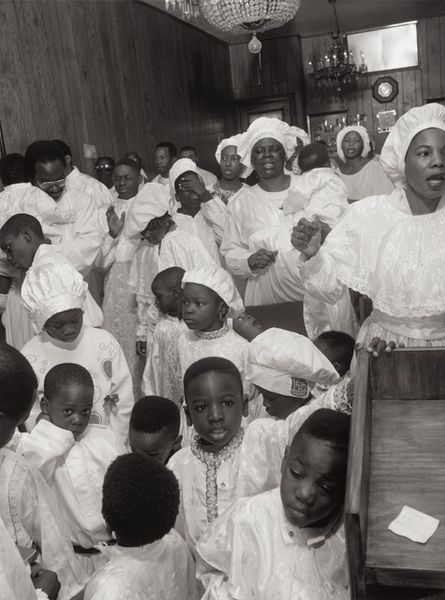 This untitled photograph was taken by Thomas Roma sometime after 1950. The monochromatic palette really focuses the eye. It's not about color here, but about light, shadow, and above all, texture. You know, the way the light catches the folds in those robes. It's all about how he captures this specific moment, which feels almost painterly. I'm immediately drawn to the lower left corner. Look at that child’s hands resting on the pew. The soft, almost blurred quality of the image makes it feel so intimate, like a memory. It’s not a sharp, decisive image, but it has this quiet, contemplative mood. Roma is reminding us that photography isn’t just about capturing a scene, it’s about feeling it, experiencing it, and letting the process guide you. You know, seeing this photograph makes me think of Roy DeCarava, another photographer who wasn’t afraid to experiment with light and shadow. They both understand how ambiguity can be a strength, not a weakness, in art.