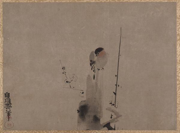 Editor: This hanging scroll, "Leaping Carp," possibly from 1868 by Nakajima Raisho, really strikes me with its determined upward movement. One carp is leaping, while another is heading up through the waterfall. What do you see in this piece? Curator: The imagery of the carp leaping up a waterfall is heavily laden with symbolism in East Asian art. Think of the cultural memory associated with this image – perseverance, overcoming obstacles, and achieving one's goals, echoing the Chinese legend of the dragon gate. Do you feel that resonance when you look at the carp? Editor: Absolutely. It feels incredibly aspirational. The carp are striving. Is there a deeper connection between the waterfall itself and the carp’s journey? Curator: The waterfall isn't just a backdrop; it’s a crucible. Water, in many spiritual traditions, represents purification and transformation. The carp ascending through it isn't just physically moving upward but undergoing a spiritual test. Their scales might even evoke armor. Do you perceive a psychological dimension to their ascent? Editor: That's insightful! It's like a visual representation of resilience and self-improvement. It also emphasizes their determination as a potent psychological trait. Curator: Precisely. And remember that symbols evolve. Later interpretations link it to career success or even academic achievement. So while the surface might show fish and water, beneath it flows a river of meaning built through history and cultural context. Editor: I've definitely gained a richer appreciation for the depth behind the imagery. This is more than just a painting; it’s a narrative. Curator: Indeed, and narratives have power to inspire, challenge, and ultimately, connect us across time and culture.