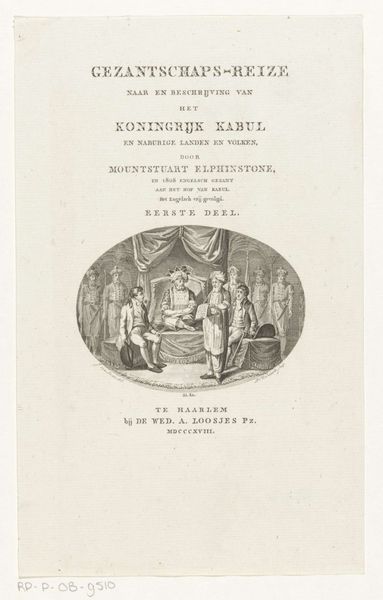 Curator: This intriguing work, found at the Rijksmuseum, is titled "Leger van mannen met tulbanden bij een deuropening," or "Army of men with turbans at a doorway." Philippus Velijn created this around 1816. It's quite striking, isn't it? Editor: Indeed. The scene depicted feels almost dreamlike, the light pencil work gives it a hazy quality. The stark contrast within the small oval vignette is also very captivating. Curator: Velijn’s use of pencil and ink to mimic older engraving styles is critical. This recalls earlier printmaking techniques, aligning it with a history of reproduced imagery circulated widely, not unique "high art" objects. Editor: The formal composition is definitely deliberate. The figure with the turban in the center, acting like the visual center of this scene of, I suppose, some execution is striking, given his rather elegant stance in the foreground, seemingly as a reference point for what's about to come to pass for this unfortunate figure on the floor. Curator: Exactly. And considering the historical context, understanding the source material - likely a book illustration - is key. Velijn's work operates within a market for illustrated texts, meant for education and dissemination of knowledge, shaping public perception through visual narratives. Who are these men depicted and what function and cultural roles might they play? Editor: Absolutely. From a visual standpoint, the repeated turbans create a striking pattern, almost like a decorative motif against the plain background, despite the violence being enacted. Semiotics could play a large role, the angles of bodies creating leading lines and a distinct contrast of emotions throughout. Curator: This contrast likely points towards the means of illustrating, depicting, and perpetuating ideas about foreign cultures. It wasn't about individual artistry. The labor involved and how it fits into book production and consumption tells a fascinating story, in conjunction with historical ideas that were popular at the time. Editor: It’s curious how something so starkly rendered can still possess a certain, quiet beauty. Perhaps this reveals the complexity of such seemingly clear compositions when visual perspective adds another layer to this art. Curator: Ultimately, for me, the work illuminates the process through which images of the "other" were created and consumed and how those processes reflect cultural ideas of power and marginalization, perhaps for pedagogical use. Editor: An important thing to remember. Thank you, that provided a unique insight!
