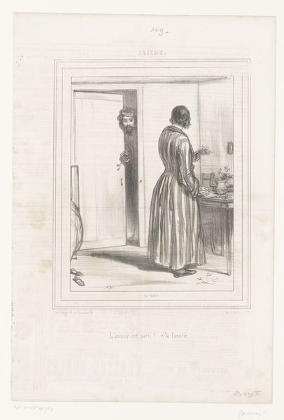 Curator: Here we have "Vrouw met tas op een kruk," or "Woman with Bag on a Stool," a print made by an anonymous artist between 1870 and 1937. It resides in the Rijksmuseum collection, rendered through engraving. What are your initial thoughts? Editor: Intimacy. I feel like I'm peeking into a very private, almost mundane moment. The woman is totally absorbed in her bag—what's she looking for, her keys or some rouge for her cheek? Curator: It's a genre painting, so this everyday realism reflects burgeoning interests in representing quotidian life, especially among women. The bag becomes significant – think of it as a mobile private space. The very act of opening it in public reveals something of the interior world. Editor: Ah, the semiotics of the handbag! It *is* like a portable psyche. You know, the meticulous detail in the engraving emphasizes this private bubble in a public setting. Curator: Exactly. The cross-hatching and delicate lines establish not just visual textures but also social textures. Consider how the figure's isolation intersects with her gender. Was she allowed to do what she wanted with such isolation? The image seems caught between realistic observation and subtle critique of women's roles. Editor: That's an interesting contradiction. There's a quiet resistance in that downcast gaze, in the act of burrowing into the bag, isn’t there? And those high-buttoned boots. Can't help thinking how uncomfortable that posture would be on a moving train! I also like that the work is not necessarily by one hand, or of one period, thus echoing the collective sense of women through time. Curator: Absolutely. The multiple layers of the unknown artist and date invite critical questioning of authorship. What narratives get recorded and preserved, and whose stories are relegated to anonymity? This work, with its technical realism, subtly highlights the complexities inherent in both artistic representation and women's lived experiences. Editor: It makes you ponder who she was, and what journey she might be embarking upon... or coming home from, and with what memories tucked carefully away in that enigmatic bag. Curator: It certainly leaves me contemplating the power of anonymity, and its place in the grand scheme of history. Editor: To anonymous artists everywhere! I find this one so quietly arresting, you know? I think I’ll carry this image with me on my next commute!