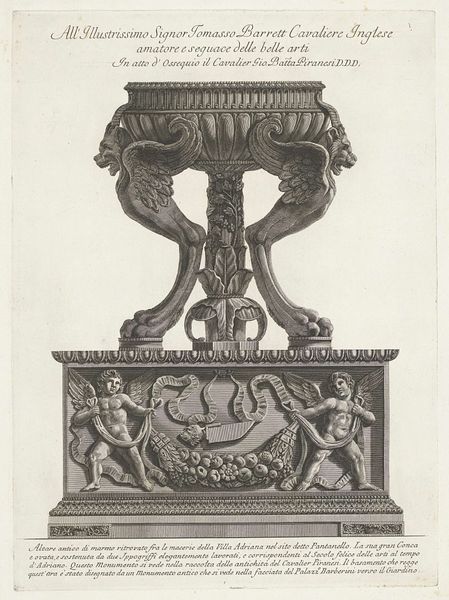 This is an anonymous rendering of a vase with a woman's head. The imagery here speaks to the power of symbols that travel through time. The vase itself, adorned with garlands and crowned with foliage, evokes classical antiquity, a period from which we inherit ideals of beauty, harmony, and order. Note the snake winding around the base. Since ancient times, the serpent has embodied duality; it symbolizes healing and wisdom, yet also embodies chaos and temptation. We can see the snake in the Greek myth of Asclepius, whose staff is entwined with a serpent. Consider how the image of a serpent, once linked to the idea of healing, is now used to signify danger. This interplay between creation and destruction speaks to the complex nature of symbols and their impact on our collective consciousness. The vase, a vessel of life, is guarded by this primordial symbol, reminding us of the cyclical nature of existence.