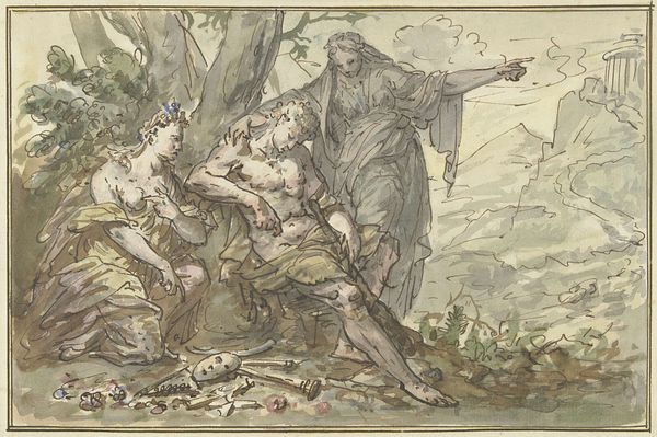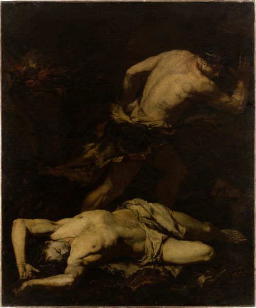 Editor: So, this is Alessandro Magnasco’s oil painting, “Three Camaldolese Monks in Ecstatic Prayer," created sometime between 1710 and 1740. It's striking how the muted colors contribute to a somber, almost mournful mood. What’s your take on it? Curator: Magnasco painted this during a time of intense religious and political upheaval. Consider the Counter-Reformation’s influence and how it sought to represent religious experience. How might these ecstatic poses and desolate landscape reflect the church's anxieties and desires to reaffirm faith through powerful, almost theatrical, displays of devotion? Editor: The monks’ postures seem…uncomfortable, almost tortured. It makes me wonder if this portrayal was fully embraced or seen as…excessive? Curator: That’s precisely the question to consider. While the Church may have supported expressions of fervent piety, did the public receive such intense displays positively? Consider the function of the painting: was it intended for public display, or for a private, more contemplative setting? The context significantly alters our understanding. Editor: It’s interesting to think about the setting impacting the message so much. It makes me question how we view it today, outside of its original setting and time. Curator: Precisely. Today, in the detached environment of a museum, we may interpret the image quite differently. The power dynamics, the role of religious institutions...we view them through a vastly changed social and political lens. Does seeing it removed from its original function change how we respond to its raw emotion? Editor: That gives me a lot to think about – how the art interacts with society and shapes people's beliefs through history. It definitely makes you realize that a painting isn’t just the image itself. Curator: Absolutely. It's a reflection of—and a participant in—the complex conversations of its time. Examining those conversations offers a richer understanding.
