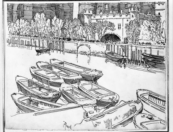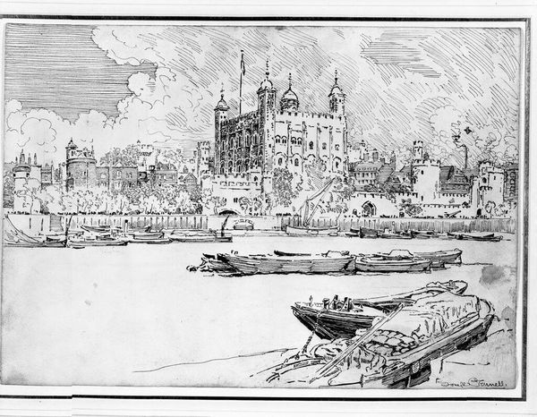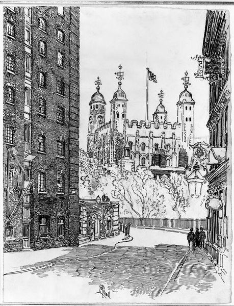 Editor: So, here we have Joseph Pennell's "The White Tower." I'm really struck by the contrast between the detailed architecture and the almost frantic energy of the foliage. What's your take on this, and how does it speak to you? Curator: It whispers to me of time, doesn't it? The solid, enduring tower versus the ephemeral, ever-changing nature. Pennell captures not just a place, but a feeling, a dance between permanence and the passage of years. Almost a haunting, wouldn't you say? Editor: That contrast of permanence and ephemerality makes a lot of sense, the way you describe it. Curator: It's like the tower stands guard, while life rustles all around it, unconcerned. Editor: I see it now. Thanks!