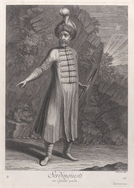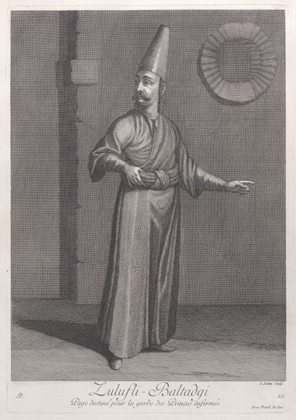 Jean Baptiste Vanmour created this print, "Kasseki, officier des Bostangis," as part of his series on people of the Levant. Vanmour, a painter from Northern France, was invited to Istanbul as part of the French Embassy in the early 18th century. The series comes out of a tradition of orientalism, and these prints exoticize the people and customs of the Ottoman Empire. The Bostangi corps were responsible for guarding the Sultan and his palaces. As such, this print gives us insight into the power structures of the Ottoman court. Notice the man's ornate clothing and confident pose, which conveys his high status. How do you think his identity as an officer shapes his role in the Ottoman court? While Vanmour meticulously recorded the dress and customs of the Ottoman people, his work reflects a Western perspective on a foreign culture. This print encourages us to consider the cultural exchange between Europe and the Ottoman Empire during this period.