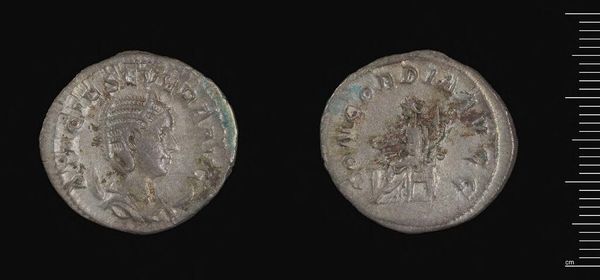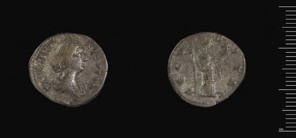 Editor: Here we have a Denarius of Julia Domna. The silver is worn smooth with age, but I'm struck by the detail in her portrait. What can you tell me about this coin? Curator: It is fascinating to consider this coin as a form of early propaganda, isn't it? How it portrays Julia Domna, wife of Emperor Septimius Severus, and the messages it conveys about imperial power and gender roles in the Roman Empire. Editor: Propaganda, that's interesting! How so? Curator: Well, think about it. This coin, circulated widely, presented a carefully constructed image of Julia Domna. It subtly asserted her influence and legitimacy alongside her husband, in a patriarchal society. How do you see that playing out? Editor: I guess by placing her image on currency, it made her a constant, visible figure of authority, reinforcing her role. It also challenges the notion of women as being absent from leadership positions, doesn't it? Curator: Exactly! This denarius, then, isn't just currency, but a political statement minted in metal. Considering the historical context allows us to interpret it through an intersectional lens, revealing so much about power, gender, and representation. Editor: This is incredible. I never thought a coin could hold such complex meaning! Curator: Indeed. It prompts us to question whose stories are told and how power is visually constructed.