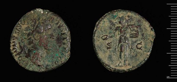 Editor: This is a coin, "As of Severus Alexander," presumably by Severus Alexander himself. It looks so worn and small. What can we learn from such a humble object? Curator: This coin, despite its size, speaks volumes about power, identity, and Roman imperial ideology. Consider how Severus Alexander, during a period of social and political upheaval, sought to legitimize his rule. How might this coin have functioned as propaganda? Editor: I hadn’t thought of it that way. The portrait would have been recognizable, even in this condition. Curator: Exactly. And think about the material itself – bronze was accessible. Its widespread distribution served to solidify the emperor’s image and authority across different social strata. It's a tactile link to power. Editor: So, even a small coin can tell a big story about Roman society. That's incredible! Curator: Absolutely. It’s about understanding how even everyday objects can reflect and reinforce dominant narratives.
