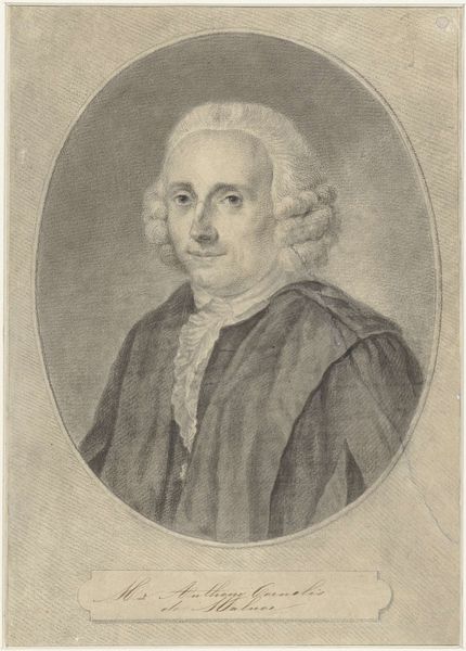 Editor: This is a print titled "Portret van James Foster," made sometime between 1748 and 1764 by Pieter van Bleeck. It's a very formal portrait; he looks important. What should we be looking at here? Curator: Well, as a materialist, my focus is drawn to the printmaking process itself. Consider the labor involved in creating an engraving like this. The meticulous work of carving those fine lines into the metal plate, the pressure exerted to transfer the image onto paper. Each stage is a physical process. Editor: That's fascinating. It does seem incredibly detailed. Almost photographic, in a way. Curator: Exactly. And that's where the social context becomes important. Prints like these were a way to disseminate images and ideas more broadly. Think about the economics of portraiture at the time. Oil paintings were exclusive commissions for the wealthy. But an engraved print? It made likenesses accessible to a wider audience, expanding the consumption of images. Editor: So, this print democratized portraiture, making it available beyond the elite? Curator: Precisely. And what does that say about the power dynamics of image production and consumption in the 18th century? How did printmakers challenge traditional notions of artistic value by mass-producing images? These are crucial questions to ask. Editor: I never thought about it that way before! Seeing art as not just an image, but also a product of labour, circulation and wider society. Curator: Exactly! And it really lets us re-evaluate what is of value.